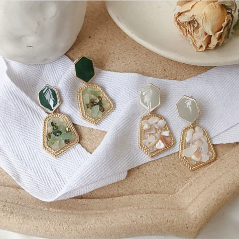 Oorbellen Korean Design S925 pin goudkleurig Kleur: creme, groen